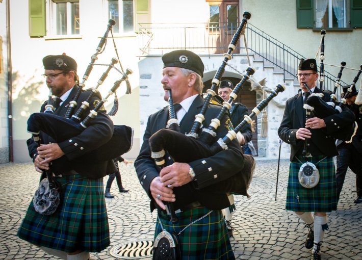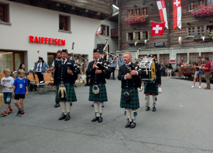 Grängier Abe mit schottischen Klängen in den Gassen von Grengiols